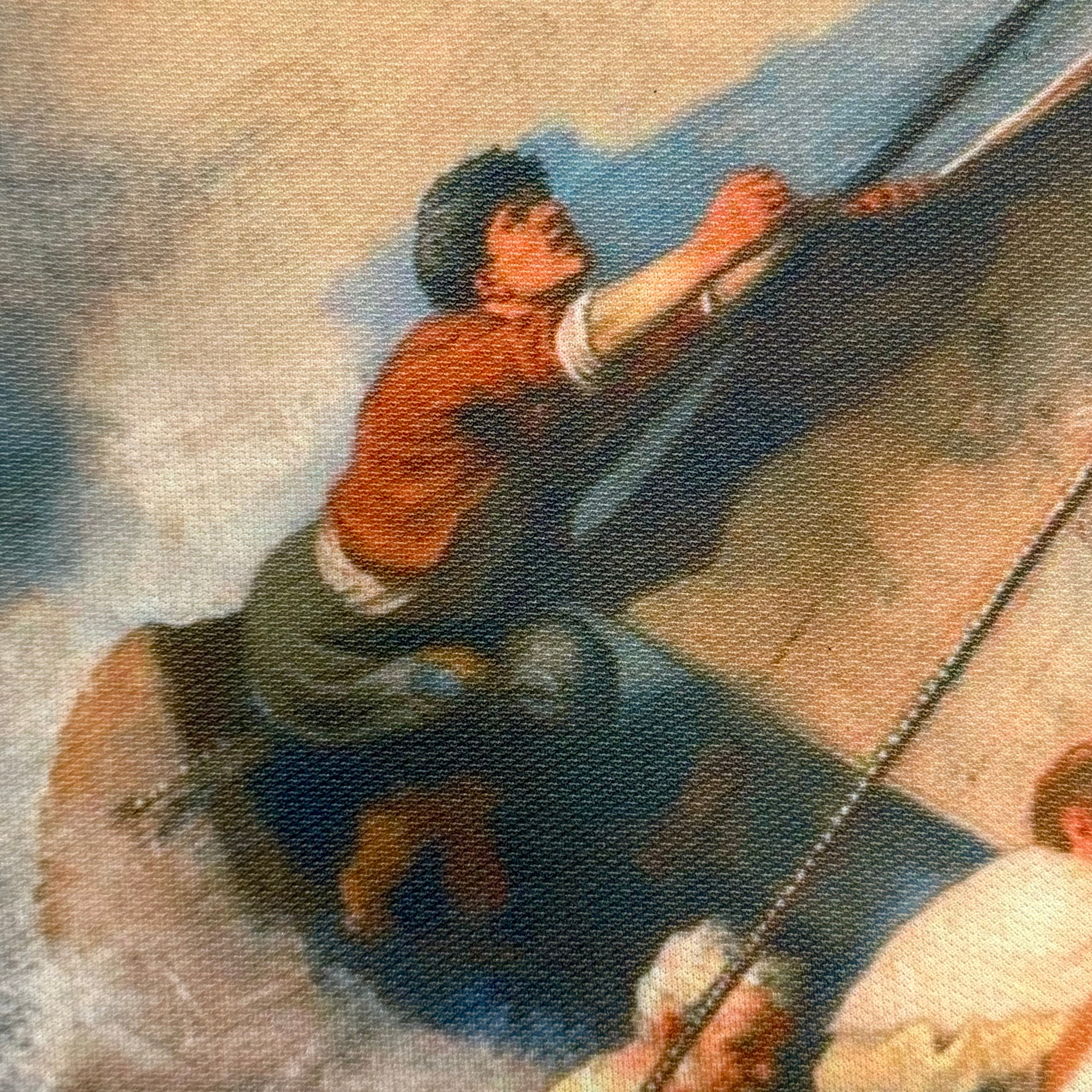 The dramatic work depicts a scene from the Bible where Jesus calms a violent storm as his disciples struggle to keep their boat afloat. Known for its dynamic composition and masterful use of light and shadow, the painting captures the chaos of the waves and the fear on the disciples' faces.